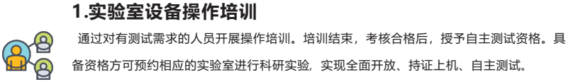 平臺支持時(shí)間預約、 送樣預約等多種網(wǎng)上預約形式,支持委托測試和自行操作等服務(wù)。