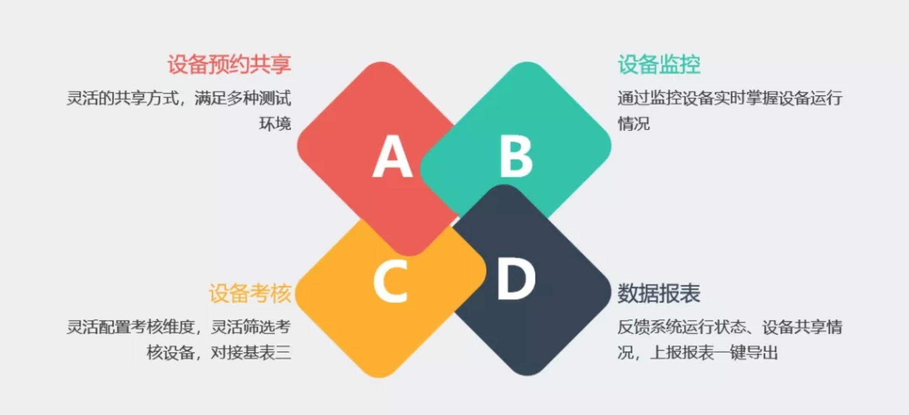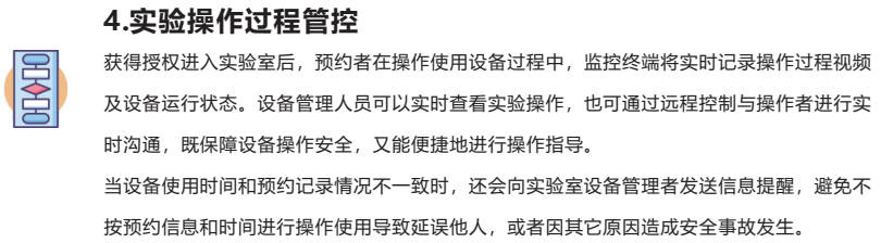 大型儀器設備網(wǎng)絡(luò )共享平臺涵蓋了設備的實(shí)時(shí)監控、預約共享管理流程、設備及人員考核業(yè)務(wù)、數據分析及上報,操作培訓業(yè)務(wù)、換管業(yè)務(wù)等功能。