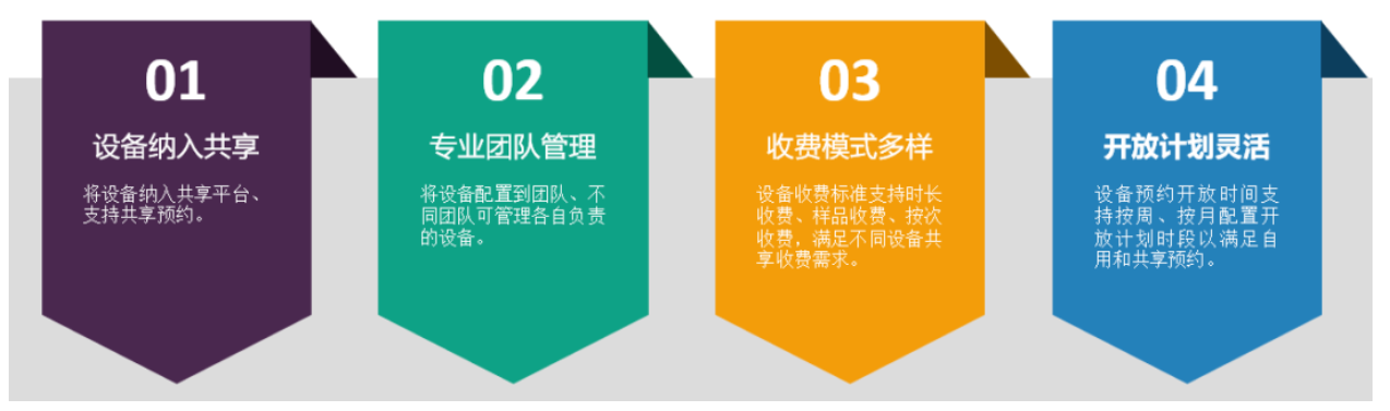 具體涉及開(kāi)放共享設備、設備專(zhuān)業(yè)管理配置團隊、共享設備實(shí)驗項目收費管理、共享模式設置(時(shí)長(cháng)預約、按次預約、按樣本數預約)、校內實(shí)驗共享基金補貼、訂單結算確認及支付等功能。